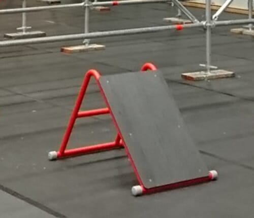 - Het springvlak is voorzien van antislip, in een hoek van 50 graden.