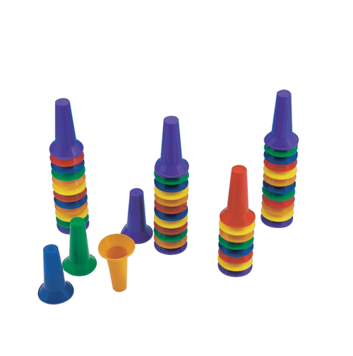 - De verschillende kleuren bieden veel mogelijkheden bij uitzetten van circuit, aangeven van afstand of startpunt, kegelspel, als handvat bij het werpen en vangen van kleine ballen, als pion bij de Doe-kleden, enz.