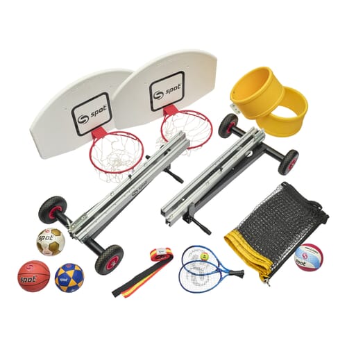 - Set bestaat uit 2 Freeplayer staanders, 2 basketbalborden, 2 korven, 1 multinet (7 meter breed), 2 tennisrackets, 2 tennisballen, 1 mixmax band, 1 volleybal, 1 basketbal, 1 korfbal en 1 voetbal.