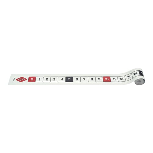 Ideaal hulpmiddel bij het oefenen van getalbegrip, tellen tot en over het tiental, aanvullen tot tien of tot een tientaltiental, sprongen van de tafels, even/oneven of inschatten van getallen. De getallenlijn is dubbelzijdig met aan één kant de lijn gevuld met getallen, startend met 0 en eindigend op 100. De vijftallen en tientallen zijn gekleurd. Op de andere kant zijn alleen de tientallen gevuld, de andere vakjes zijn leeg. De vakjes van de vijftallen zijn wel gekleurd. De getallenlijn is gemaakt van sterk maar toch soepel vinyl. Kan binnen en buiten gebruikt worden. Als het materiaal smerig is kan het met een vochtige doek schoongemaakt worden. Afmeting (l x b) 500 x 10 cm.