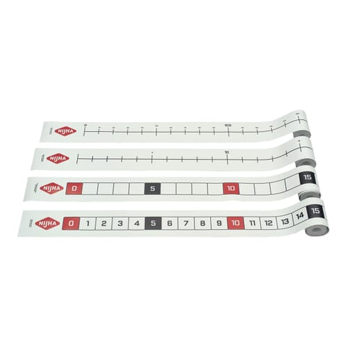 Set met 4 dubbelzijdige getallenlijnen. Daarmee kan optimaal gedifferentieerd worden als het gaat om getalbegrip, tellen tot en over het tiental, aanvullen tot tien of tot een tientaltiental, sprongen van de tafels, even/oneven, inschatten van getallen, tellen tot en over 100, aanvullen tot 100 of tot een honderdtal of inschatten van getallen. De getallenlijn is gemaakt van sterk maar toch soepel vinyl. Kan binnen en buiten gebruikt worden. Als het materiaal smerig is kan het met een vochtige doek schoongemaakt worden. Afmeting (l x b) 500 x 10 cm.